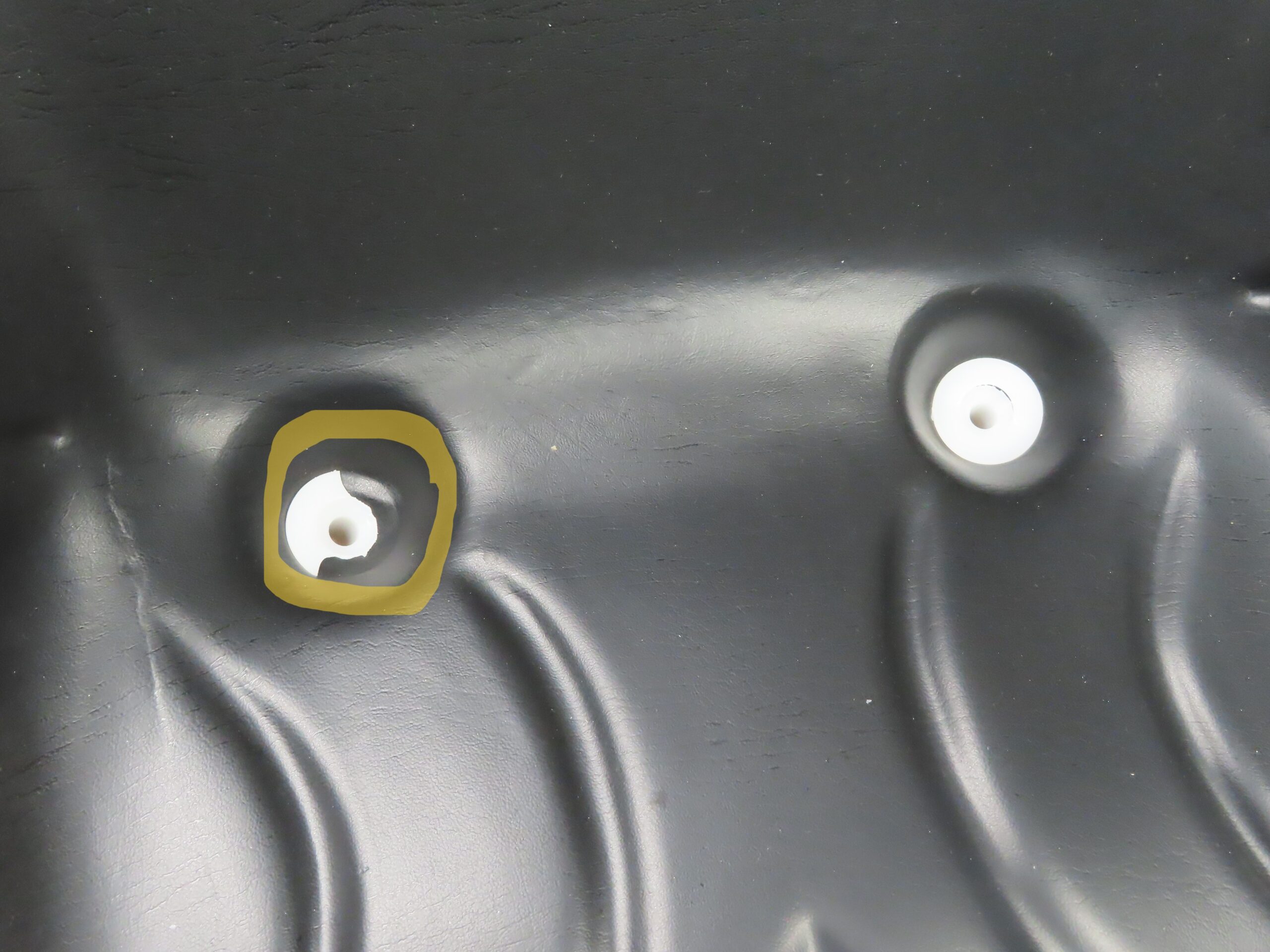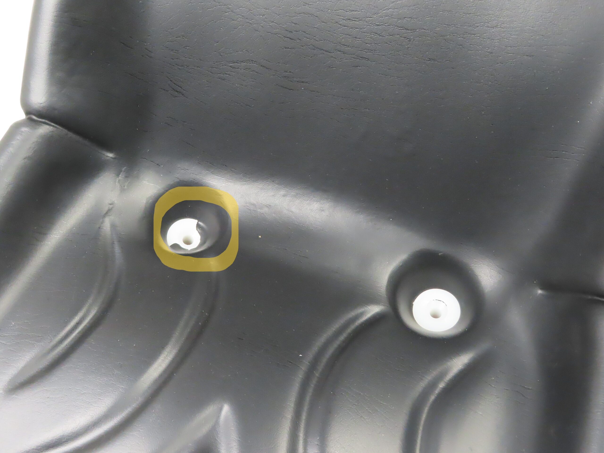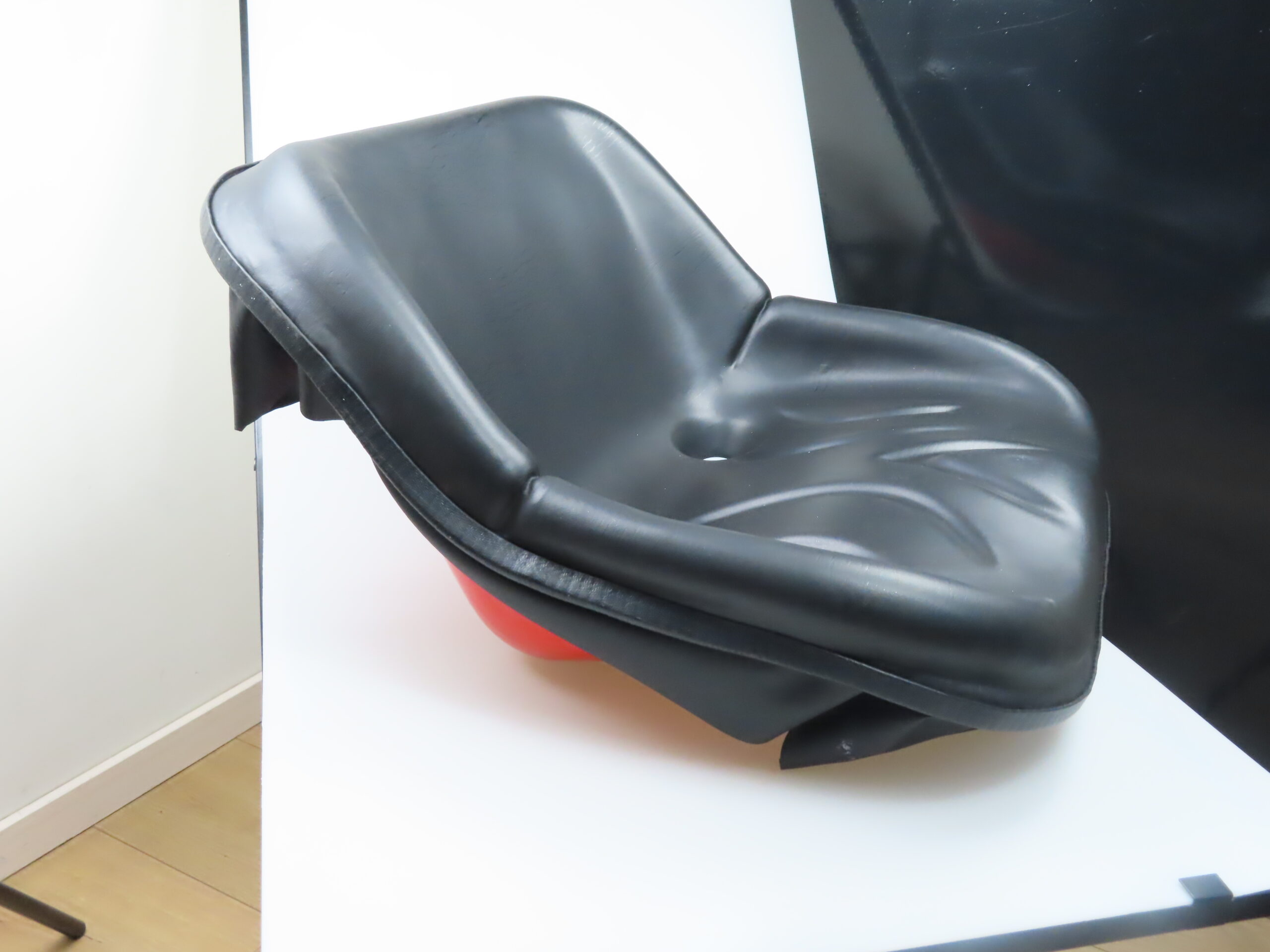 Chaise en orange Kubota avec revêtement noir. La chaise a un capuchon cassé pour le drainage, voir les images.